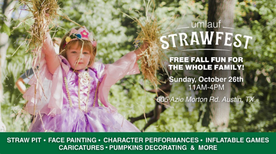 Put on your best costume and join the UMLAUF for a FREE family day of games, fall crafts, a costume parade, straw pit, face painting, character performances, caricatures, educational activities, pumpkin decorating, goodies from H-E-B, and more!