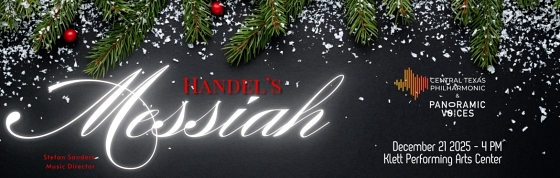 Celebrate the spirit of the Christmas season with one of the most cherished holiday traditions—Handel’s Messiah. The Central Texas Philharmonic joins forces with the acclaimed Panoramic Voices for a radiant performance of this timeless masterpiece.